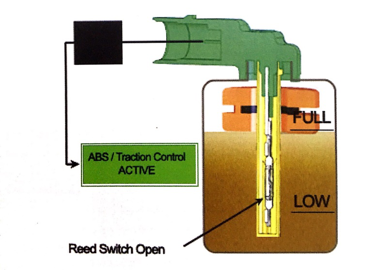 圖2.剎車液位低于最低液位,干簧開關(guān)閉合激活指示燈