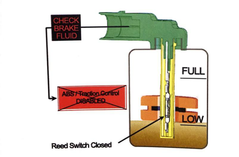 圖1.剎車液位在最低液位之上,干簧開關(guān)沒有被激活